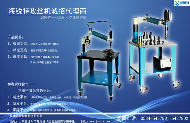 济南海锐特机械有限公司是气动攻丝机和电动攻丝机的专业制造商,海锐特现在面向全国诚招各区域代理商。